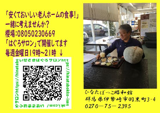 これから毎週金曜日の夜間相談会の時、下記【じじばばサラダ】の試食とプレゼントを用意してます。是非いらして下さい! 投稿日 2019年12月6日 更新日 2019年12月22日 著者 ひなたぼっこ カテゴリー 老人ホームの食事 ツイート 商品開発:協同食品さん協力をお願いしました。商工会の経営支援事業にご指導をお願いしました。詳細は、またご報告します。 ツイート